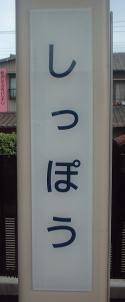 でもでも、この駅名版、下のローマ字部分だけ読むと、かなり激萌です♪ 「O」の上のバーを無視すれば「SHIPPO」…ほら、やっぱり、しっぽぢゃないですかあっっっ!!!! やはり、考えようによっては、聖地駅なのかもしれないじょぉぉ〜〜〜〜〜!!!!!! セイントテールもジョニ田様も、いつか必ずつかまえてやるからなあっ!!!!(ちゅど〜〜〜〜〜〜ん!!!!)