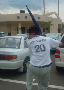 しかし、なんと!!!! 真帆子ちゅわんが応援するこの中学チーム、未だに0対0の引き分け状態で、得点が入っていません…。「ピッチャーの投球が怖くて甲子園に行けるかあっ!!!???」あまりのふがいなさに、怒声をあげるモッくん。中学の野球で甲子園に行くわけがないと思うのですが…。そのうち、「え〜い、じれったい!!!」何を考えたのかモッくんは、D氏の車にあった傘を勝手に持ち出すと、突然素振りを始めたのです!!!! ちょっとちょっと…、ここは球場の駐車場ですよぉ…(那智滝汗)。100回素振りを終えたモッくんは、「みつけた…オレのダイヤモンド…」とつぶやきました…。いや…、その…、確かに野球場の内野部分のことを確かに「ダイヤモンド」と言ったりしますが…(汗)。するとモッくんは、ごまかすかのように、傘を持ったまま、バイクにまたがって走っていってしまいました…。ちょおっとぉ〜〜〜〜!!!! それはD氏の傘ですよぉ〜〜〜〜〜!!!!???? 急いでおいかける我々…。しかし、100mも走らないうちに、我々を凍りつかせるような驚愕の光景が目の前に…!!!???