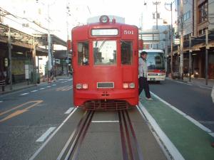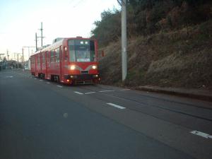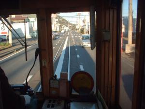 かなり交通量の多い路面を、電車はガタゴト進んで行きます。