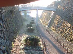 道路からうまく渡れそうに無いので、横断歩道から行きました。