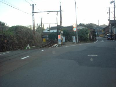 関方面の乗り換えホームは、これとは逆に、交差点を右に曲がった方向にあります。