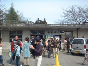 スキー板持った客で、既にホームは満杯状態…(;^_^A
