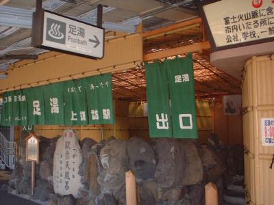 上諏訪駅に着くと、その1番線ホームには、なんと上諏訪温泉の足湯が♪