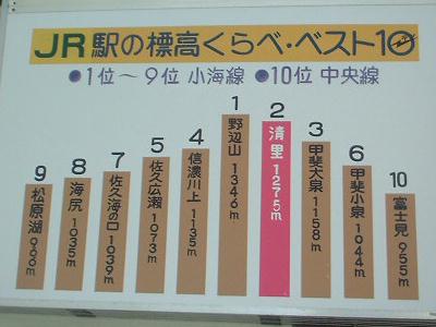 清里駅には、JR駅の標高ベスト10が載ってまして、
