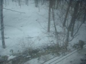 バスが進むに連れて、周囲がだんだんと雪景色に…。