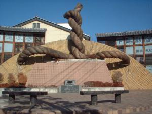 そういえば、秋宮の近くには、「おみばしら」と称して、でかいねじれた縄が…。