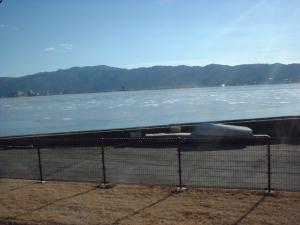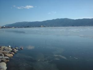 諏訪湖の湖面は、一部凍っていましたが、確かに氷は解けてしまっています。