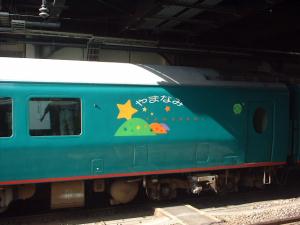 対岸の…1番線でしょうか? そこには、緑色の「やまなみ号」が見えました♪