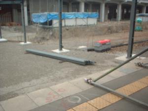 この写真は工事中のホーム跡でして、目の不自由な方用の黄色い線があることからホーム跡だとわかりますね♪