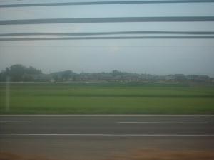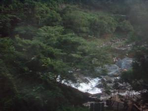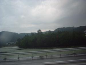 姫新線の車窓。確か、楢原駅直前の音田池あたりだと思います。雨がちょっと降りました。