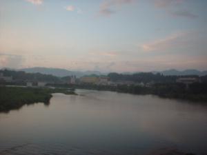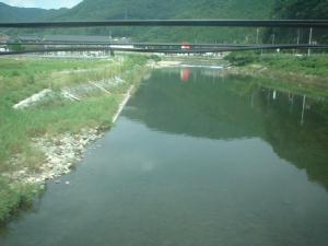 津山駅近くの車窓。吉井川の広大な眺めでした♪