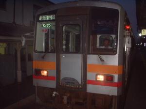 19:46発の新見行き列車です。あたりはもうすっかり暗いです。