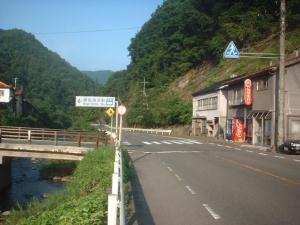これは、上記の駅前の坂道を降りて橋を渡ったところにある国道での写真です。