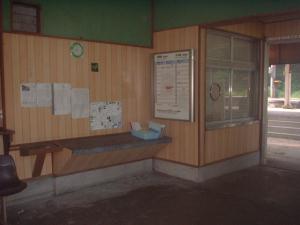 駅舎内です。かつて有人駅であったことを偲ばせますが、今はこのとおり…。
