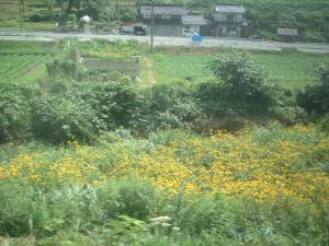 さらに列車は進みます♪ 沿線の花が綺麗です♪ 先ほどのパパも、この道路を疾走♪