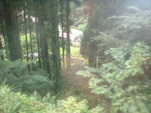 木々の間に見える光景、この写真だとちょいわかりづらいかもですが、出雲坂根駅の駅舎です♪