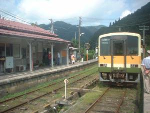 道後山駅です。木造の結構立派な駅舎です。このあたりは、古い味のある駅舎がいくつも残ってます。