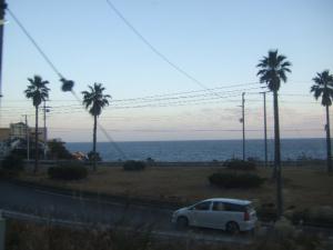 こちらは、太海駅付近の車窓♪ 夕陽がほんのり彩りを添えていい感じです♪