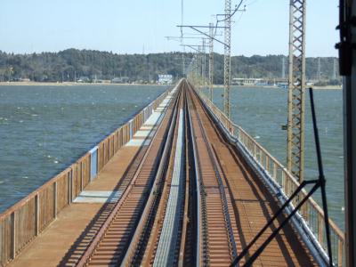 途中、霞ヶ浦から流れ出る川を通ったりもしますが、そのあとに渡る、延方〜鹿島神宮間の北浦の方が見ごたえがあります♪