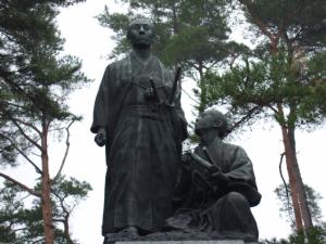 これは現地にあった松蔭と弟子の像です。