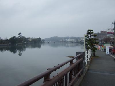 萩の中州を囲む阿武川です。対岸の中洲のほうに、萩の中心街があります。ちなみに松蔭神社や山陰本線は本土側にあります。