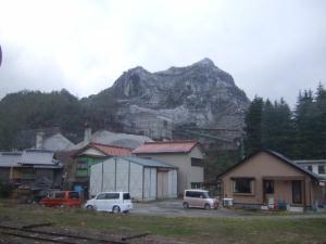 右は重安を過ぎたあたりの車窓です♪ セメント関係の工場があるようで、写真に見える山も、資源採掘の跡が見えますね。