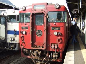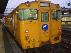 まだこんな時間の列車に乗ります(爆) 山陰本線に直通します。キハ47です。