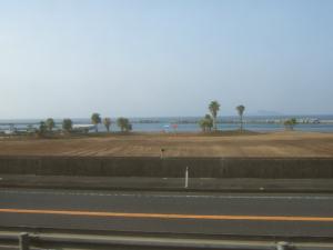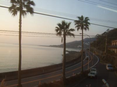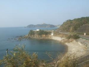 天気が悪いのですが、車窓には海が見えます♪ 晴れていたらもっと綺麗なのかなあと思います。