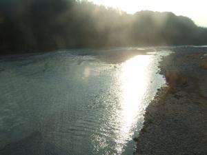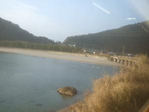 ところで、車掌さんに、「球磨(くま)川はどちら側に見えますか?」と尋ねたところ、
