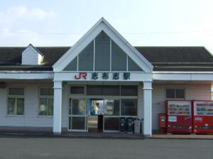 志布志駅の出口から右へ進み、国道との交差点に到達したら左折し少し歩くと、「志布志駅上」というバス停があります♪
