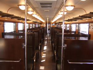 中はこのように木材を利用した造りになっており、いい感じです♪ JR九州のお家芸ですね♪
