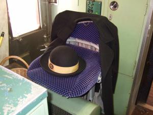 女性客室乗務員さんの帽子とジャケットが置いてありました。思わずパチリ(笑)