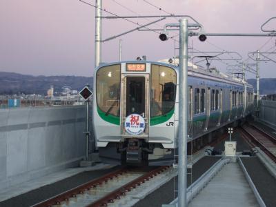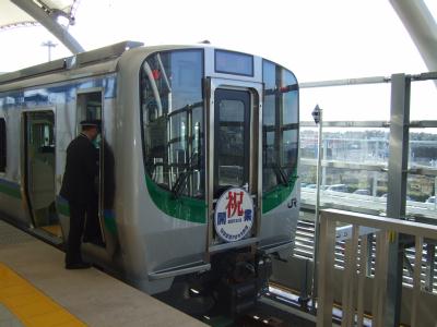 こちらは、JR側所有のE721系です♪ 前面に開業記念ヘッドマークが♪