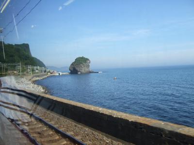婆ちゃんの言っていたとおり、車窓は海岸線に沿っており、美しいです♪