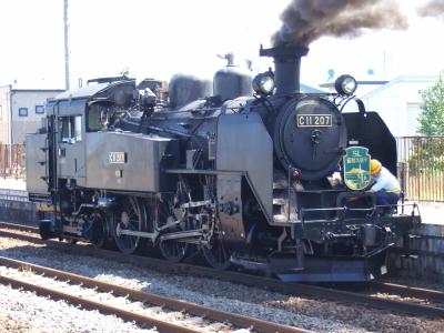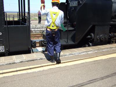 つまり、SLは、バックして客車を牽引していくことになるわけです♪ すごいですね〜☆