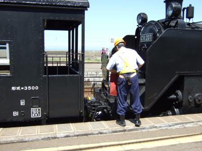 このとおり、なんと、SLは逆に連結されます。写真の右側が函館方向なのです。