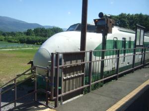こちらは、流山温泉駅です。待合室に、新幹線200系の車体が使われております♪