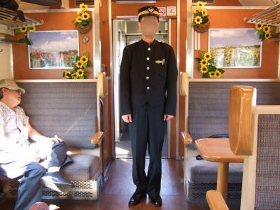 男性車掌さんも、レトロバージョンの制服で雰囲気出してくださってます♪