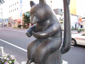 途中、銭函駅です♪ 銭箱をかたどったこのオブジェ、なかなか粋ですねえ♪