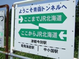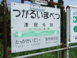 このように、写真手前に津軽二俣駅(津軽線、JR東日本)、写真奥に津軽今別駅(海峡線、JR北海道)の看板が出てますね♪