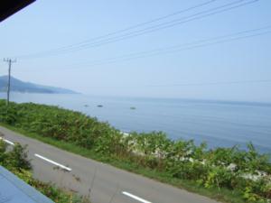 「長万部から先は、海が見えるから景色がいいよ。左側の窓の方に座りなさい」