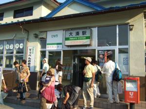 この江差駅でもお相撲さんを1人みました♪ 高校だか大学だかの相撲部員が10人くらい一緒でした。後輩の指導に来ていたのかな?