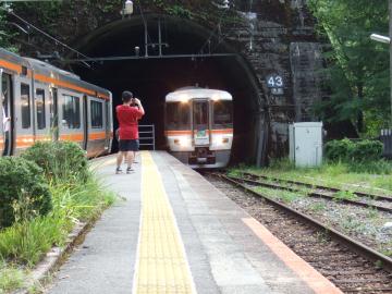 大嵐(おおぞれ)駅で交換待ち停車☆