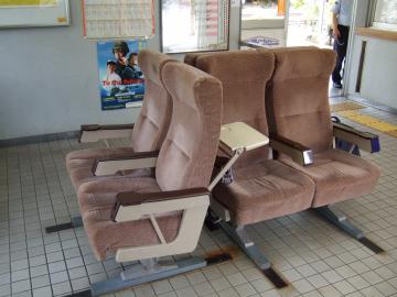 駅の待合室には、かつての特急電車で使われていたシートがベンチ代わりに使われております☆