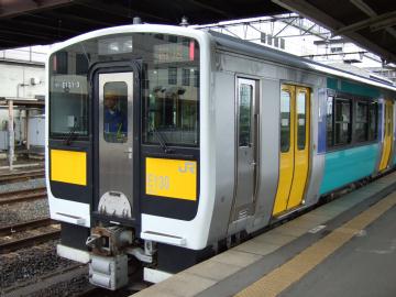 水郡線ホームでのキハE130型気動車です♪ 新しい気動車ですね☆ 近年の電車のごとく、カラフルなステンレス車両です♪