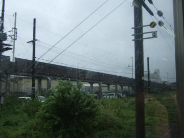 福島駅を出ると、山形新幹線の高架が下ってきて合流します(左の写真)。