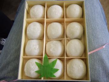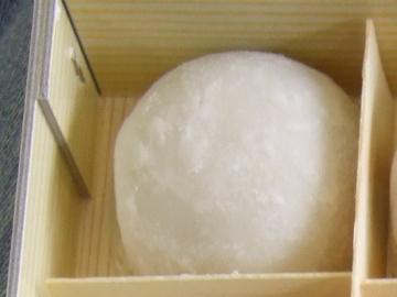 というわけで、めでたく餅をゲット♪ こしあんの大福でして、一口サイズです♪