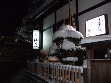 これは入口の写真です♪ 雪国らしく、入口の雪吊りと雪との組み合わせが風情ありますね♪