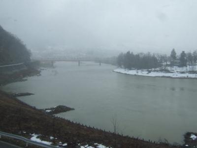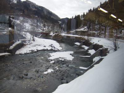 JR西日本区間は専ら、山間部の姫川の車窓が見所となります♪ 雪景色も混じりいい感じです♪