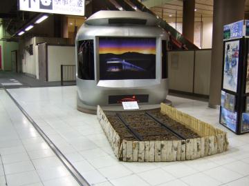 左の写真は駅改札内にあったカシオペア号を模したオブジェでして、側面からはスイートルームの見本が覗けます☆